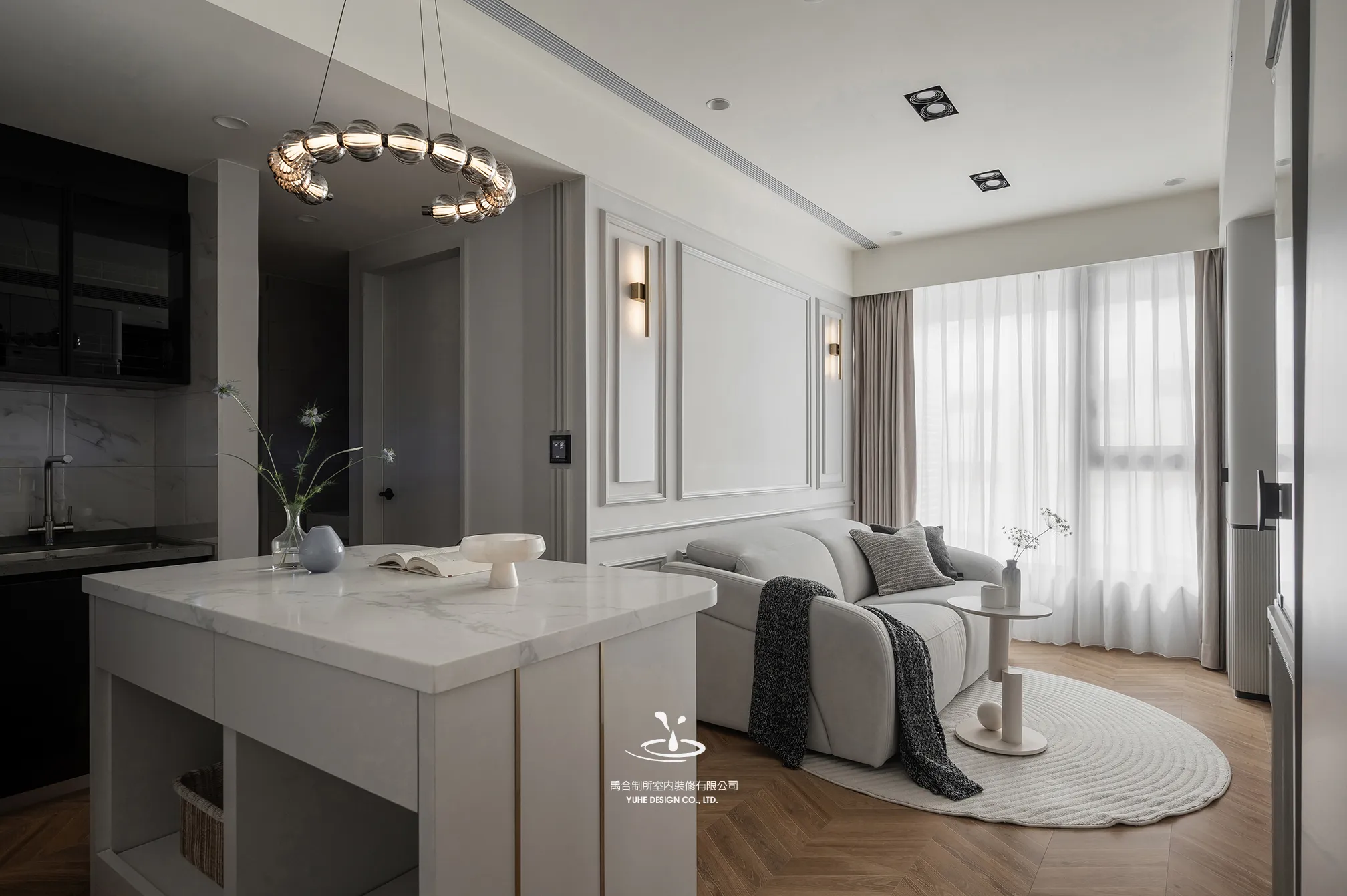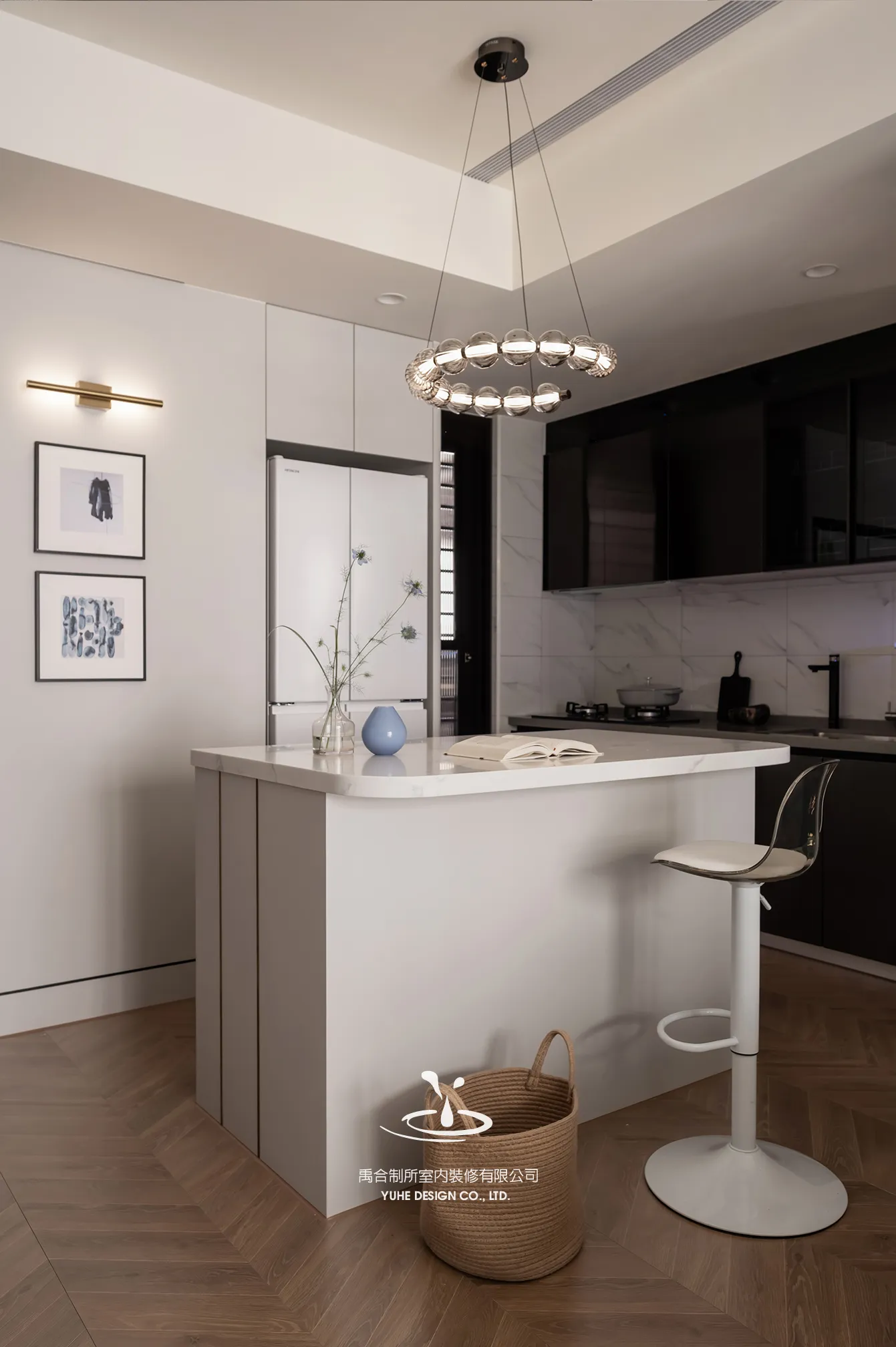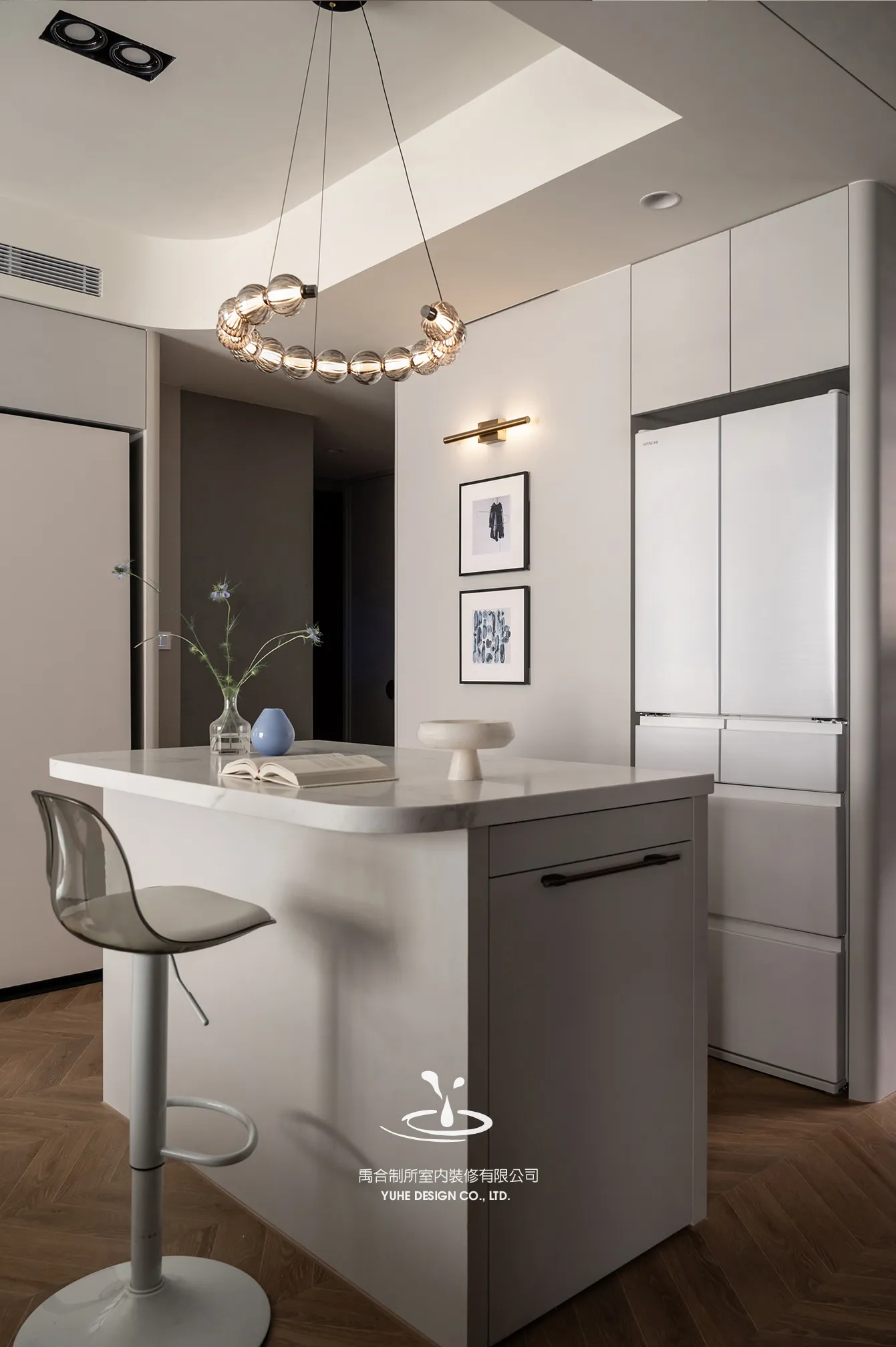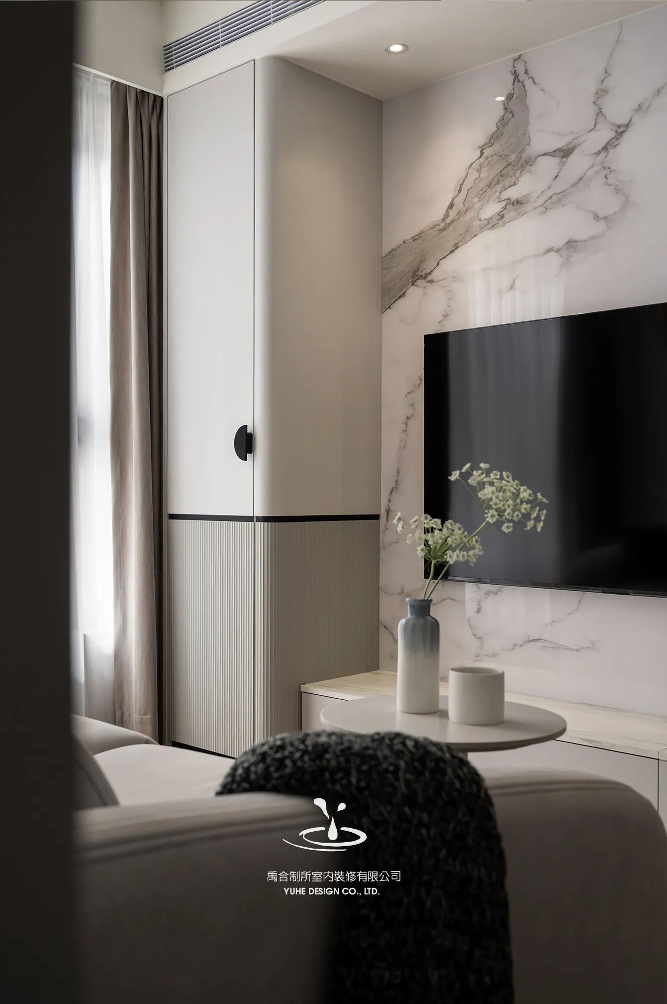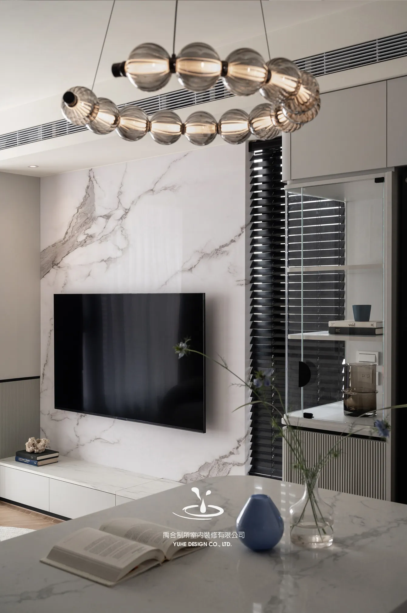 很多人以為小坪數只能將就, 其實只要比例抓對, 生活就會變得很舒服。 用石紋延伸電視牆的視覺軸線, 弧形櫃體收起銳利邊角, 格柵與玻璃展示櫃讓光有層次地停留。 中島結合餐桌, 讓生活不被空間切割, 而是自然流動。 - 你們家會想要中島結合餐桌嗎? 一起來聊聊吧💕