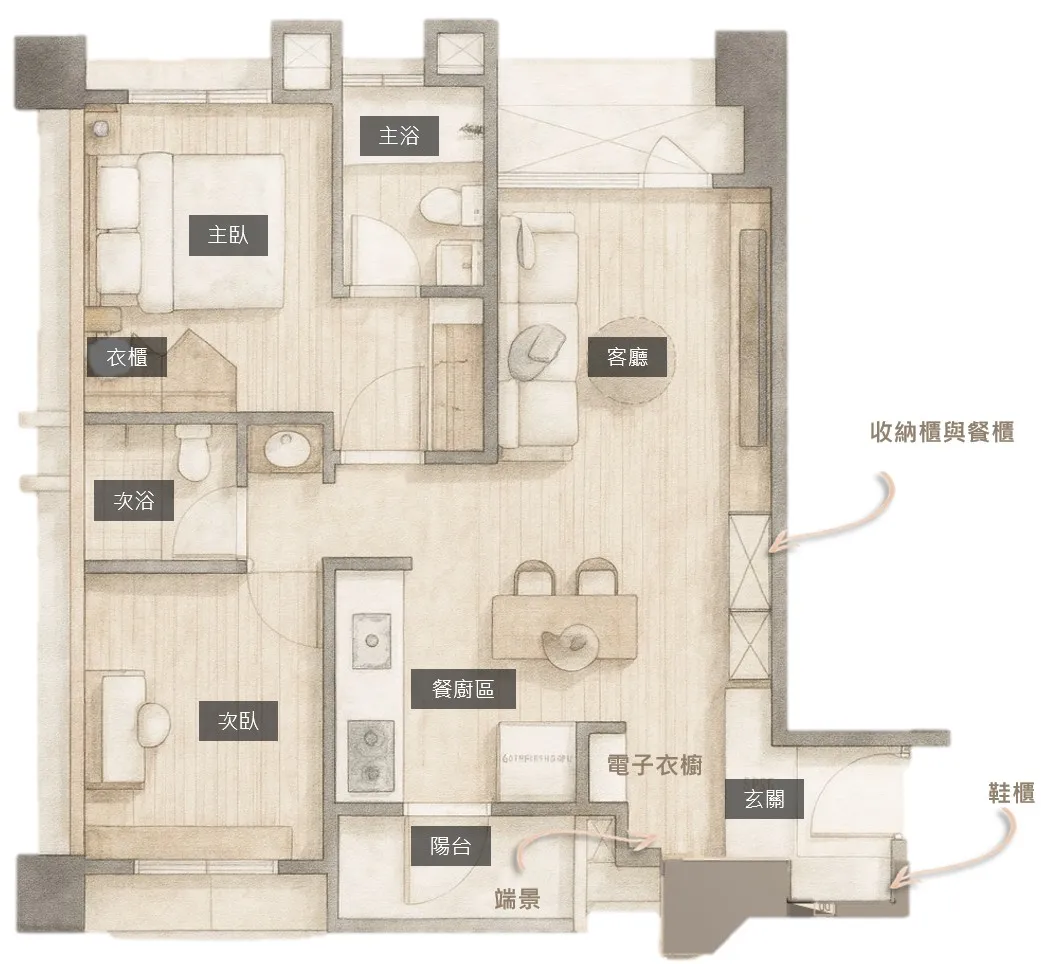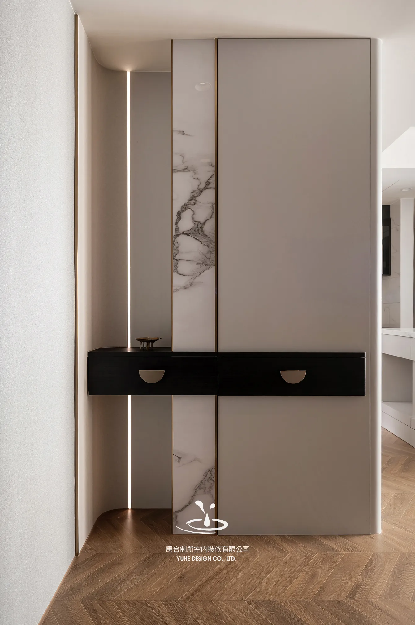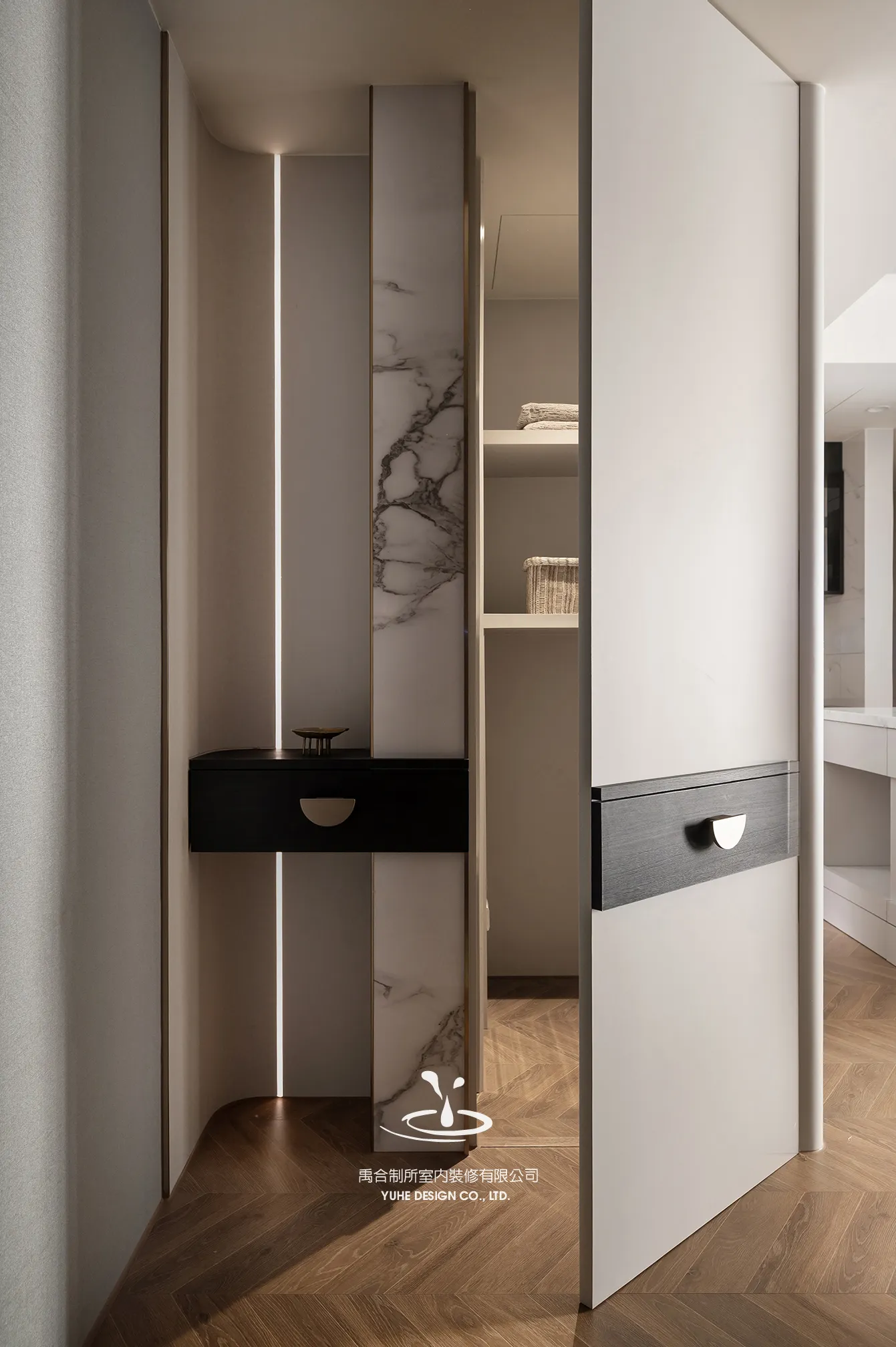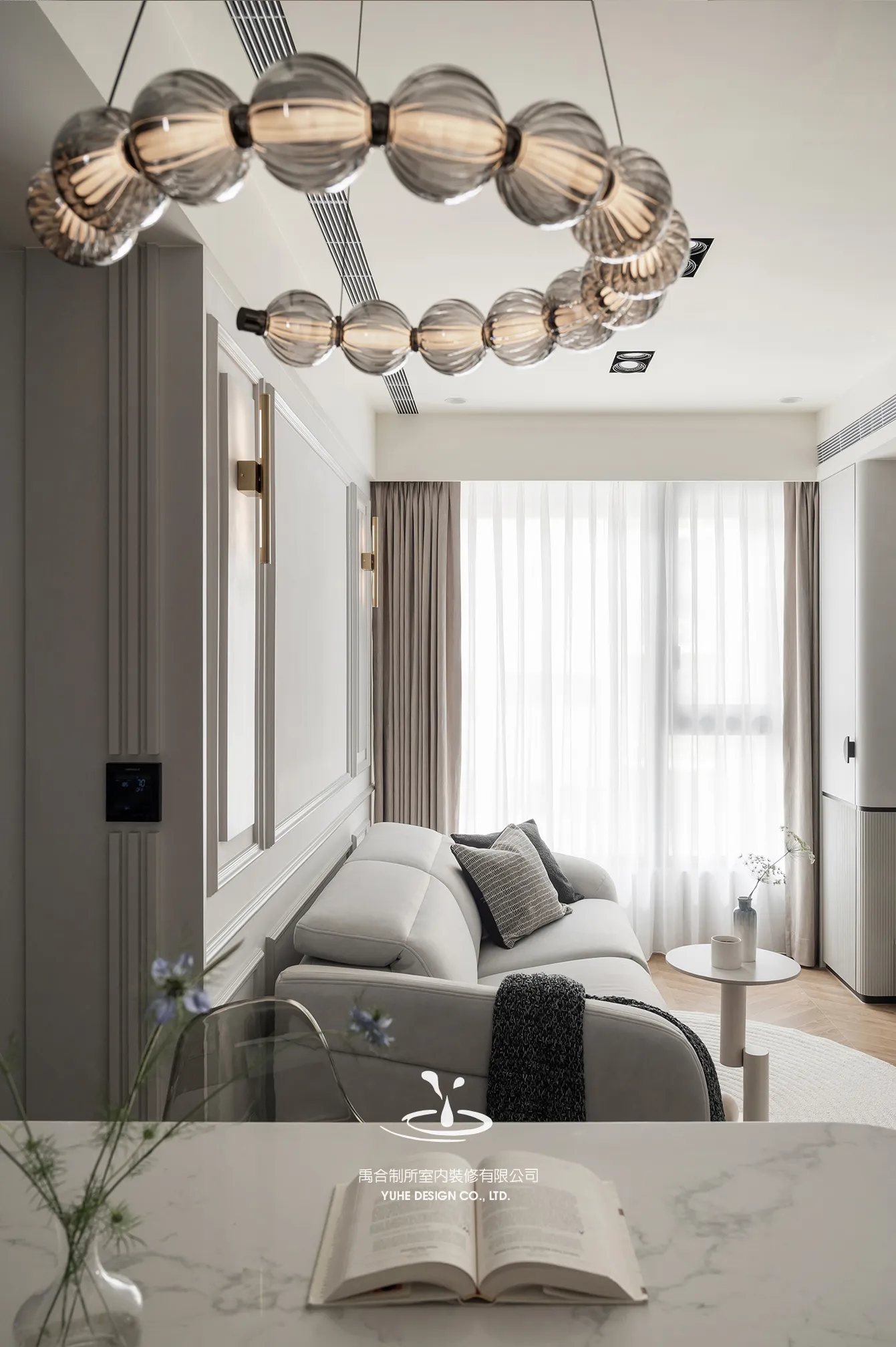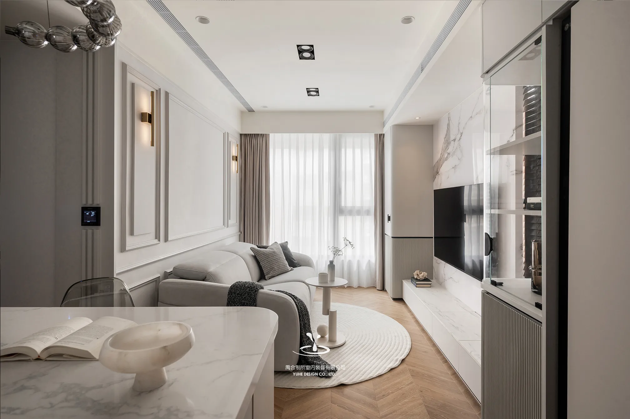 很多人以為小坪數只能將就, 其實只要比例抓對, 生活就會變得很舒服。 用石紋延伸電視牆的視覺軸線, 弧形櫃體收起銳利邊角, 格柵與玻璃展示櫃讓光有層次地停留。 中島結合餐桌, 讓生活不被空間切割, 而是自然流動。 - 你們家會想要中島結合餐桌嗎? 一起來聊聊吧💕